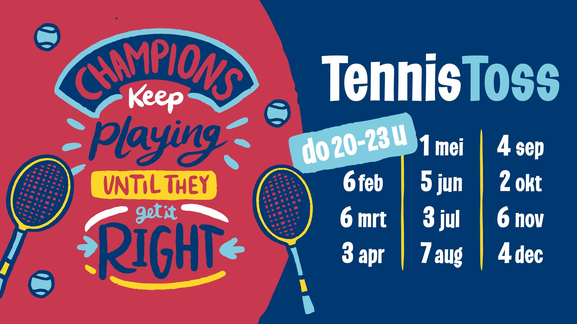 📅 Elke eerste donderdag van de maand vanaf 20.00 uur – Tennis Toss